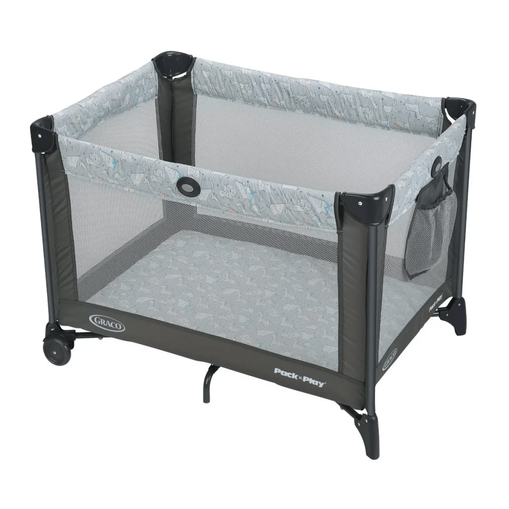 Last on my baby gear list is the pack-n-play. This is a “save” for me. We have really used our pack-in-play so sparingly- a beach house rental, grandma’s house, and a few other times here and there- it doesn’t have to look aesthetically pleasing! For us, no one ever really sees it. And this model is super easy to collapse and set up.