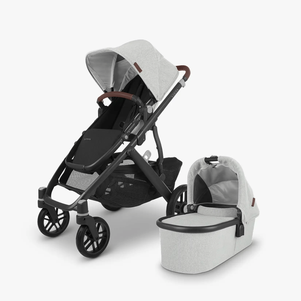 I swear by the Uppa Baby Vista Stroller. With two kids under three, it’s been amazing to have a quality product that has converted through our different life stages. You can have it as a single stroller with an infant car seat, bassinet, or toddler seat! And you can add a second seat for baby #2! It’s also great on streets and tough terrain. There’s a reason you see them everywhere! We love ours!